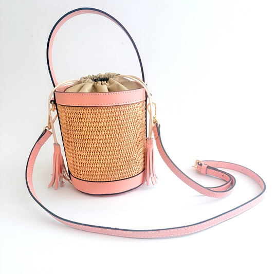 Heaven's 27 Raffia Light Pink Raffia Bucket Bag