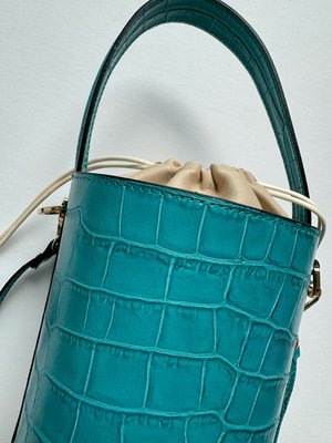 CC X CG Turquoise Crocodile Embossed Leather Bucket Bag