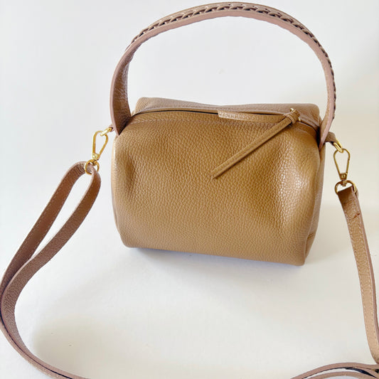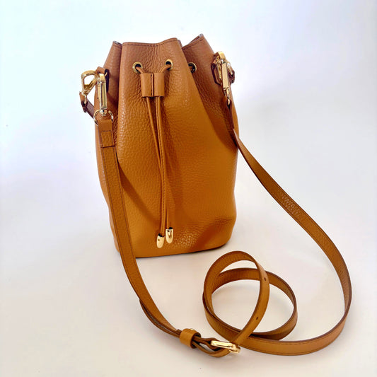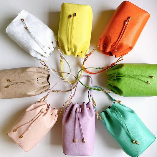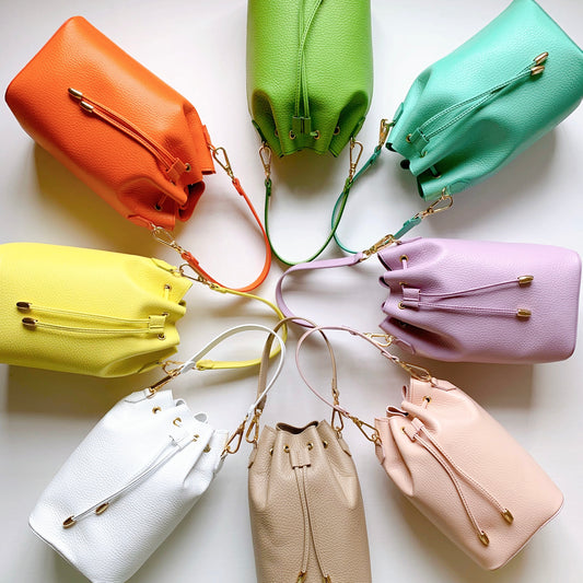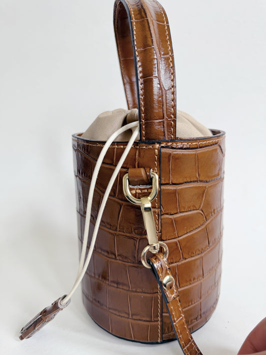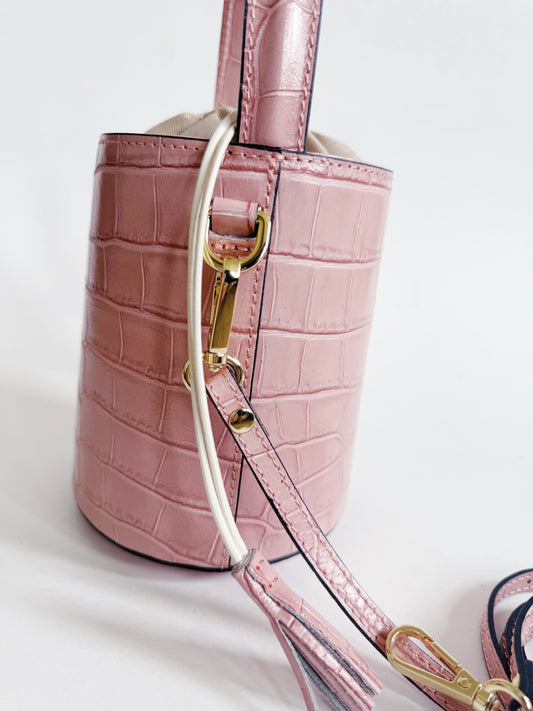 Light Pink Crocodile Embossed Leather Bucket Bag