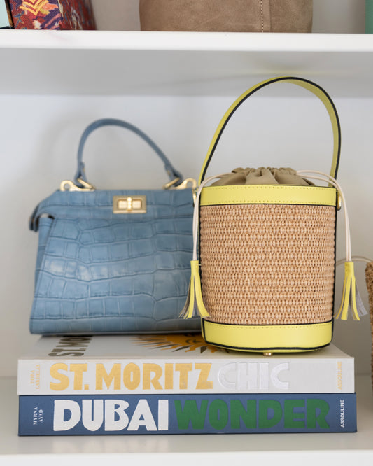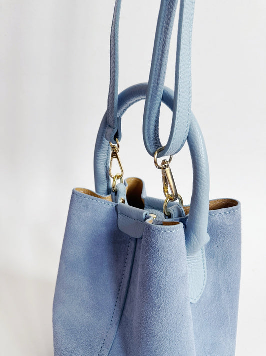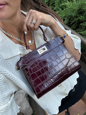 Ocean Blue Crocodile Embossed Leather Flip Lock Bag