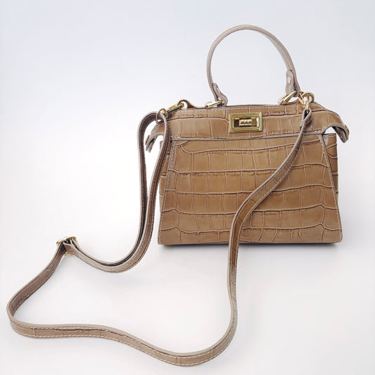 Sage Green Croc Embossed Leather Flip Lock Bag