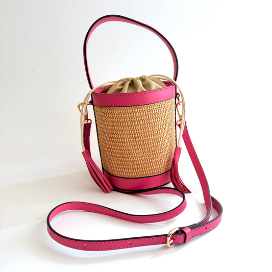 Pink Raffia Bucket Bag