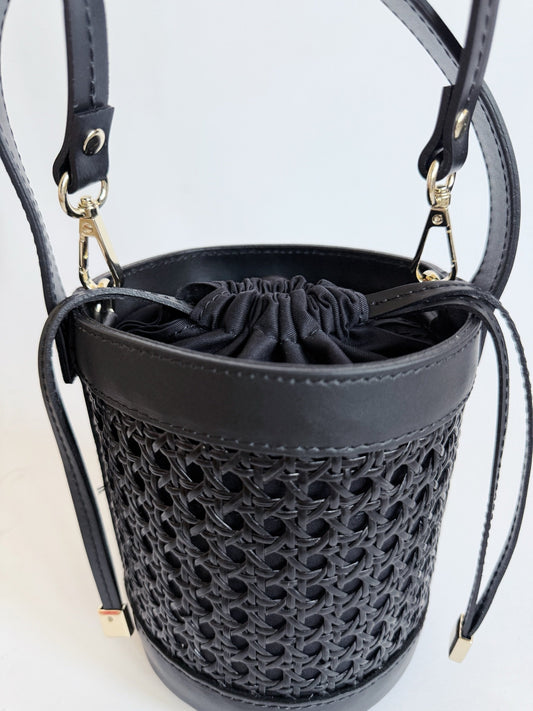 Black on Black Cane Wicker Bucket