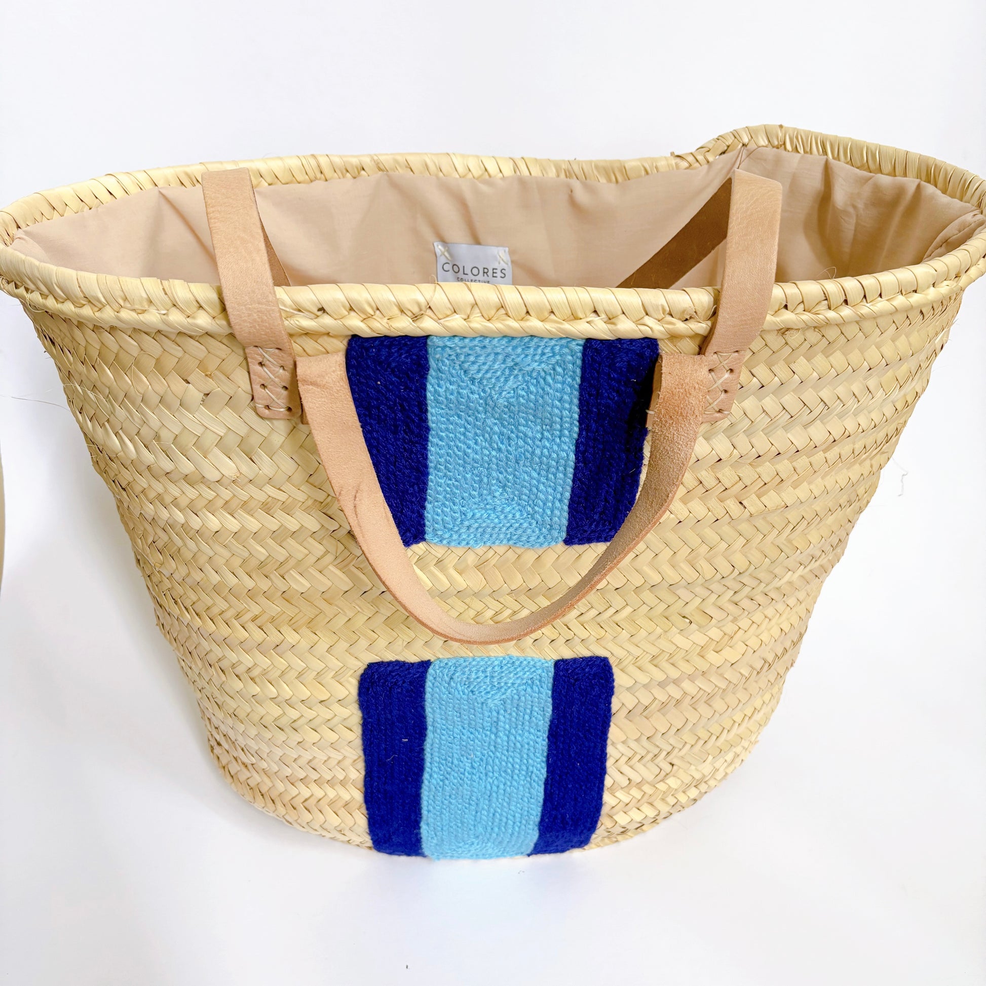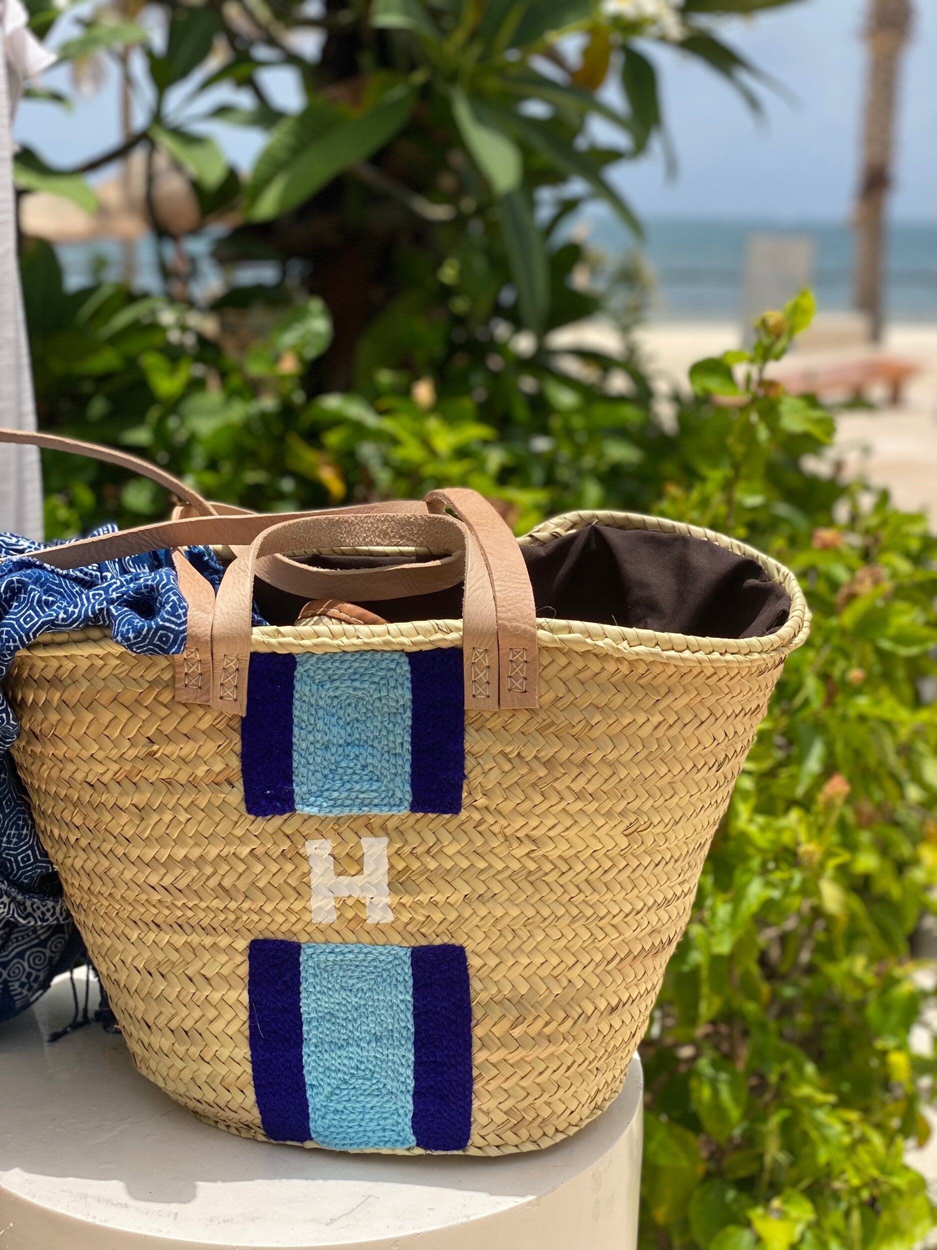Handwoven straw totes made in Marrakesh, Morocco. Each bag features both long and short leather straps for easy carrying! Drawstring cotton liner keeps your contents safe and secure. Full size tote to carry all the items you need.