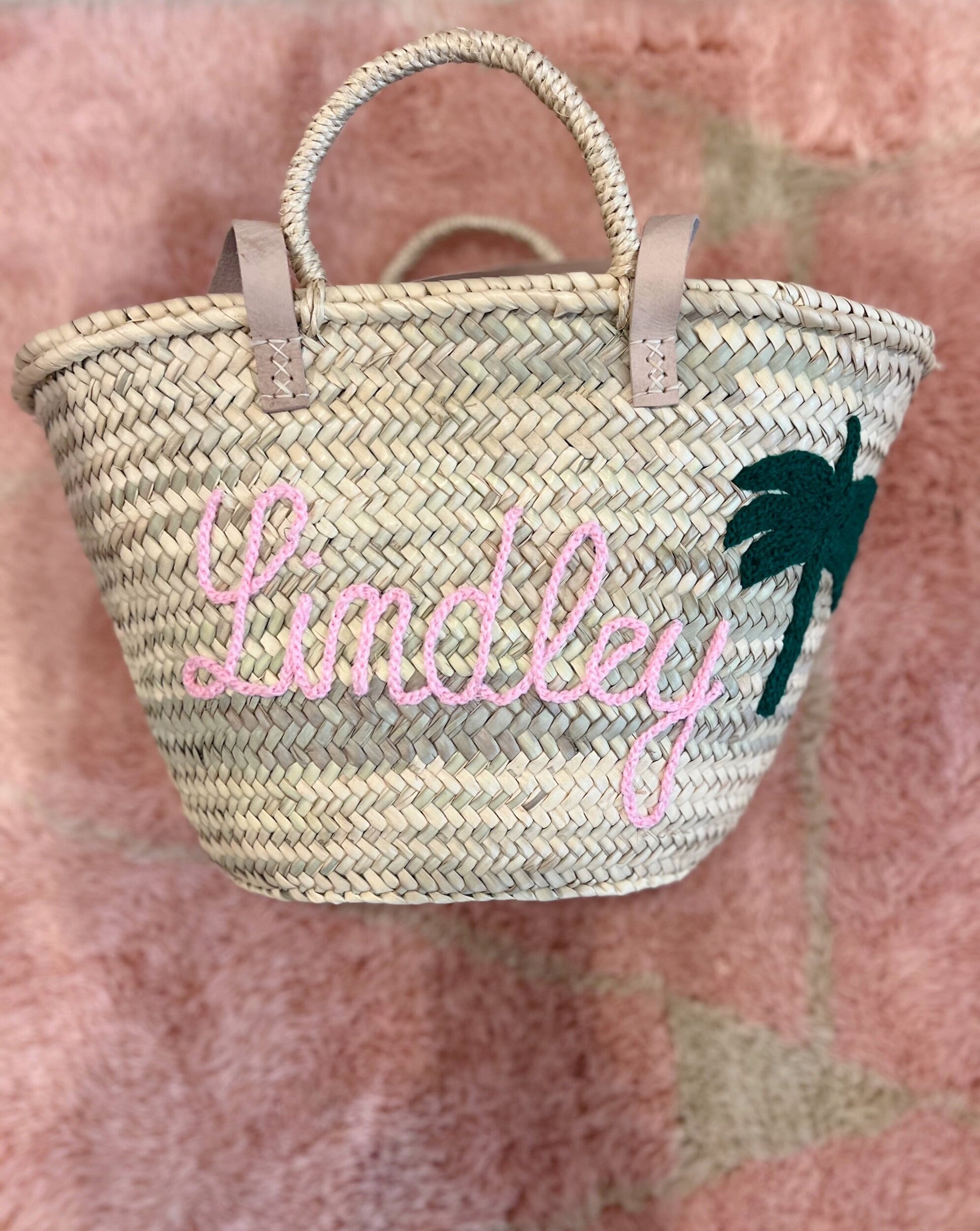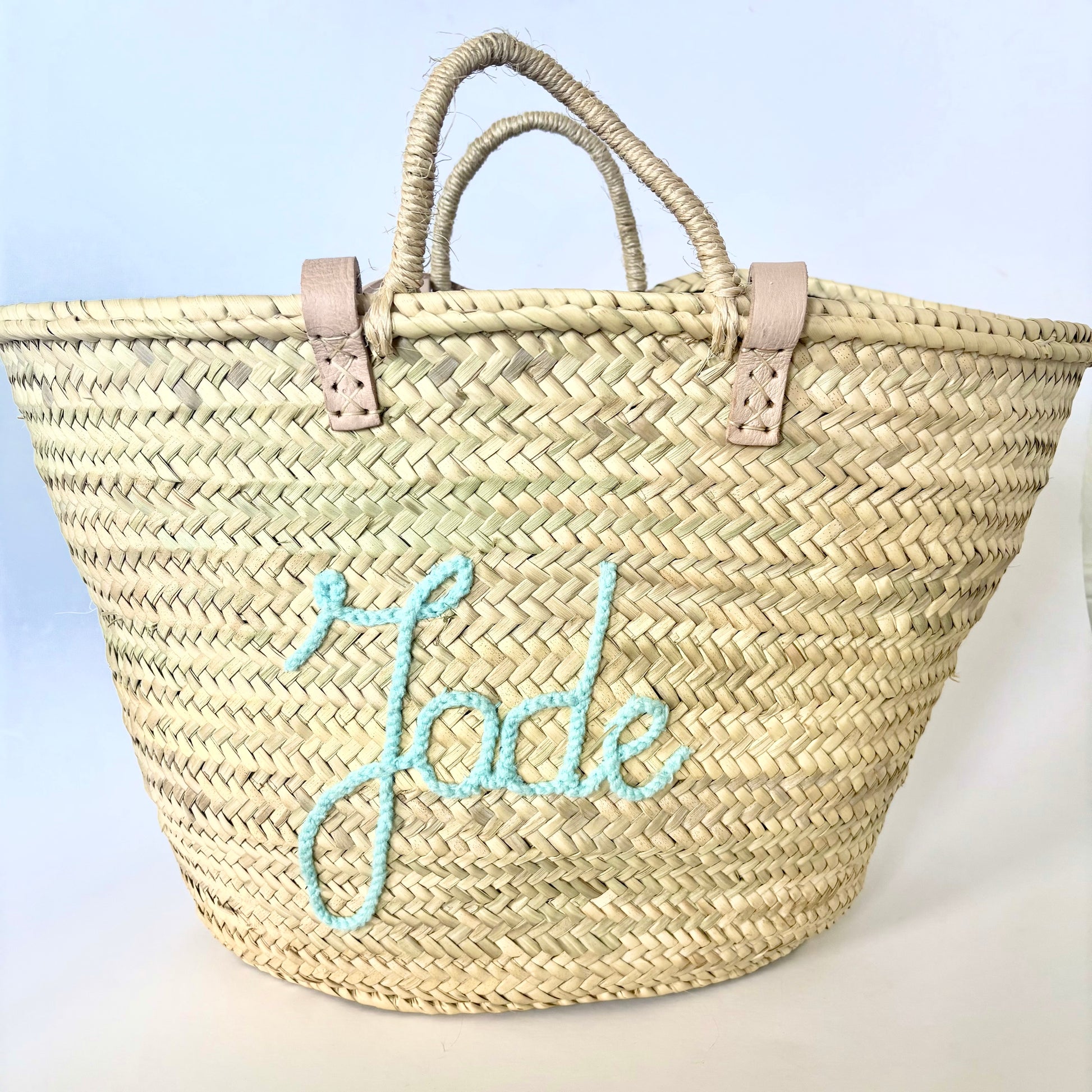 Large baskets have both the straw handles as well as longer leather straps for handheld carrying.