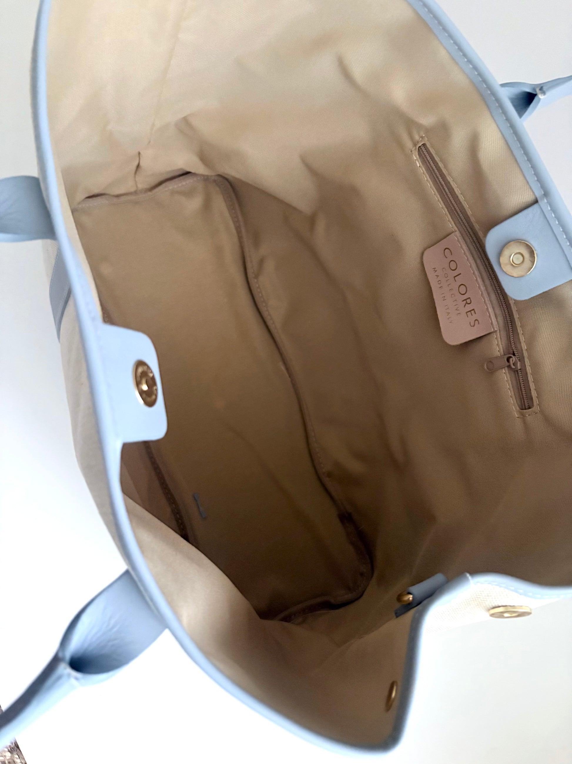 Meet, The Antibes Tote! Made from Italian Leather and Canvas, this "do it all" bag is perfect for daily use, pool bag, beach tote, work/ computer bag and even a diaper bag!
