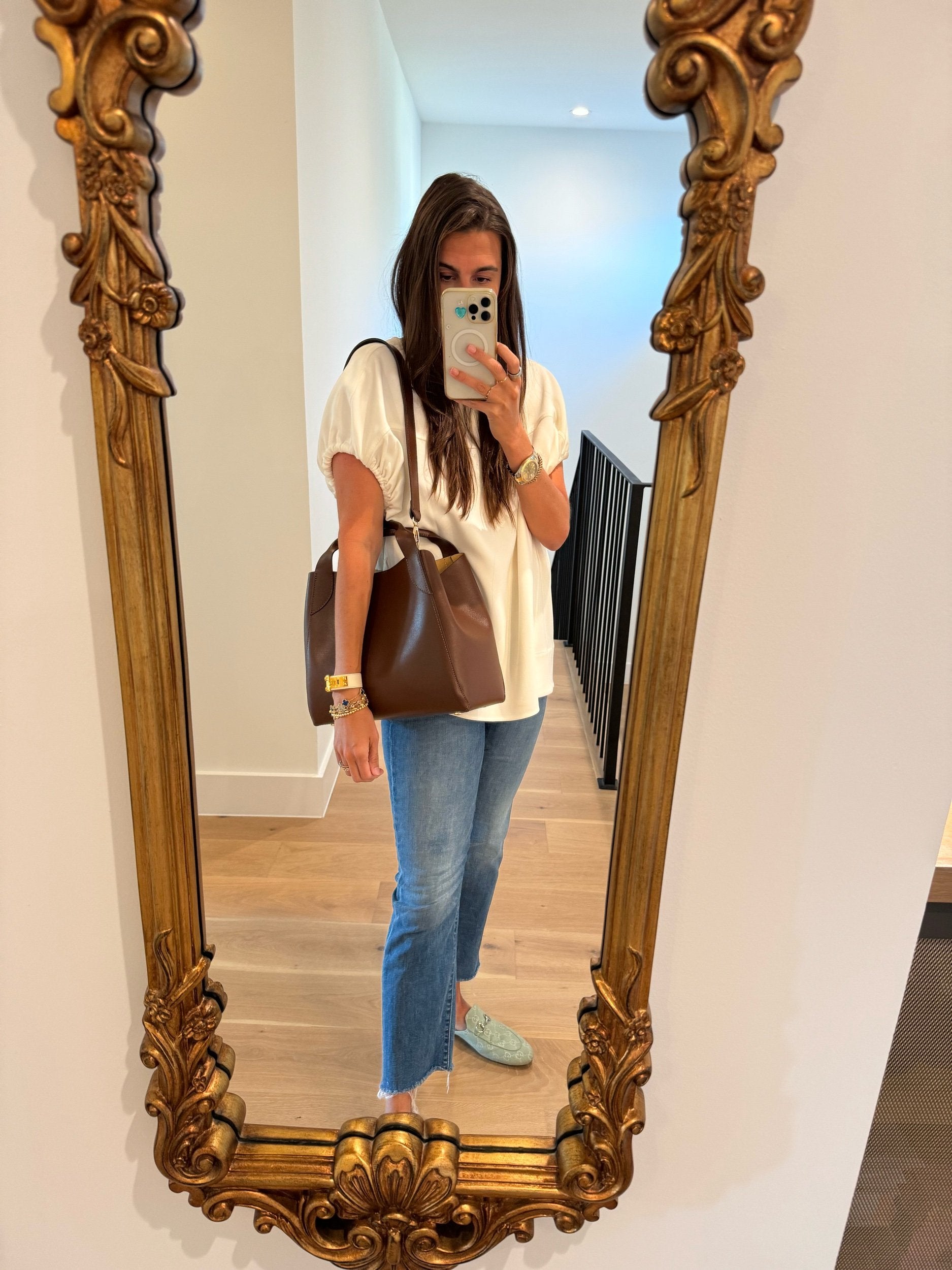 Four gold tone “feet” at each of the bottom corners of the bag to keep the leather off the ground.