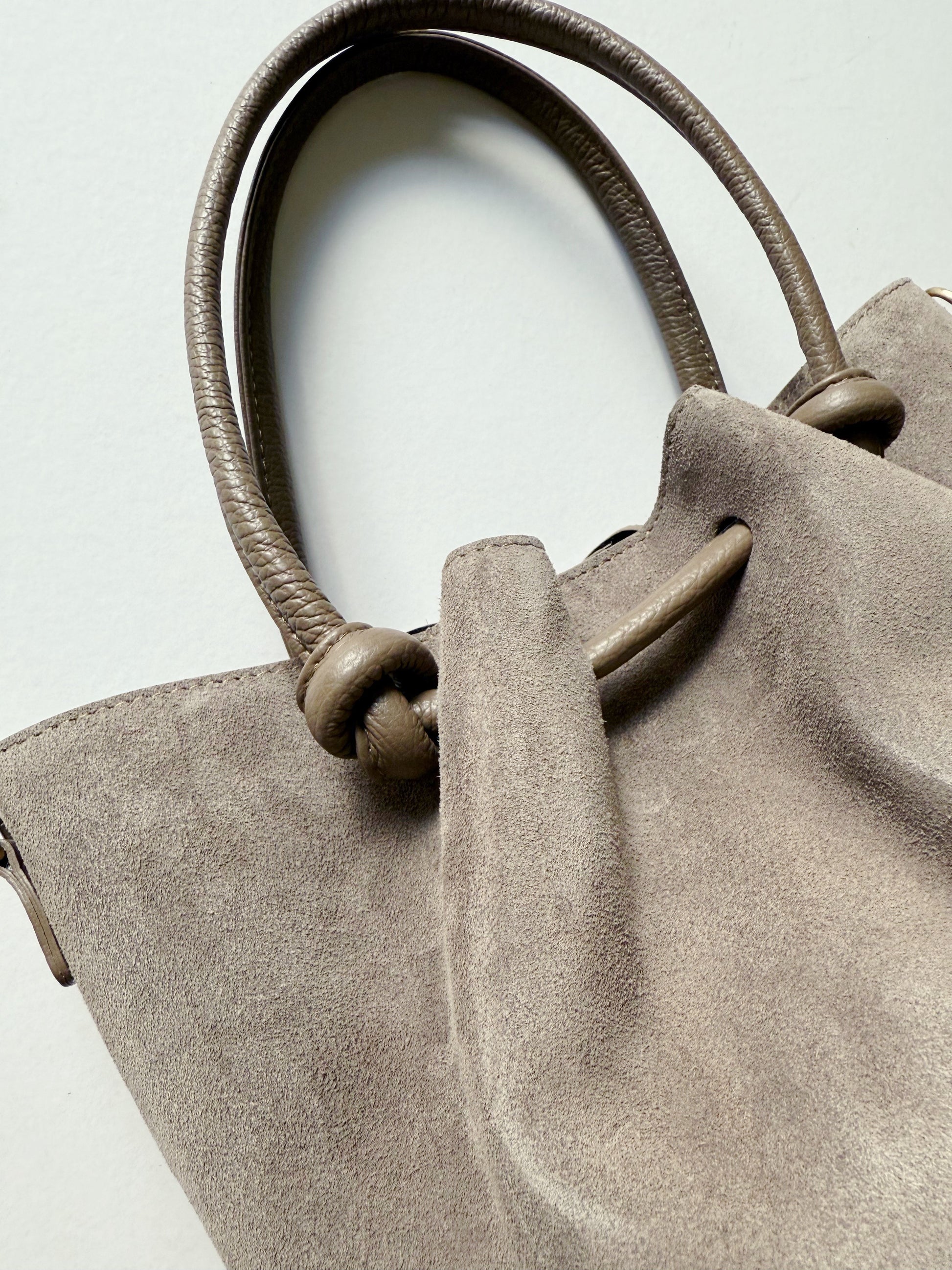 These new "knot" totes are the perfect in-between size bag for all your seasonal outings. Has a removable pouch, adjustable crossbody strap and a flat base.