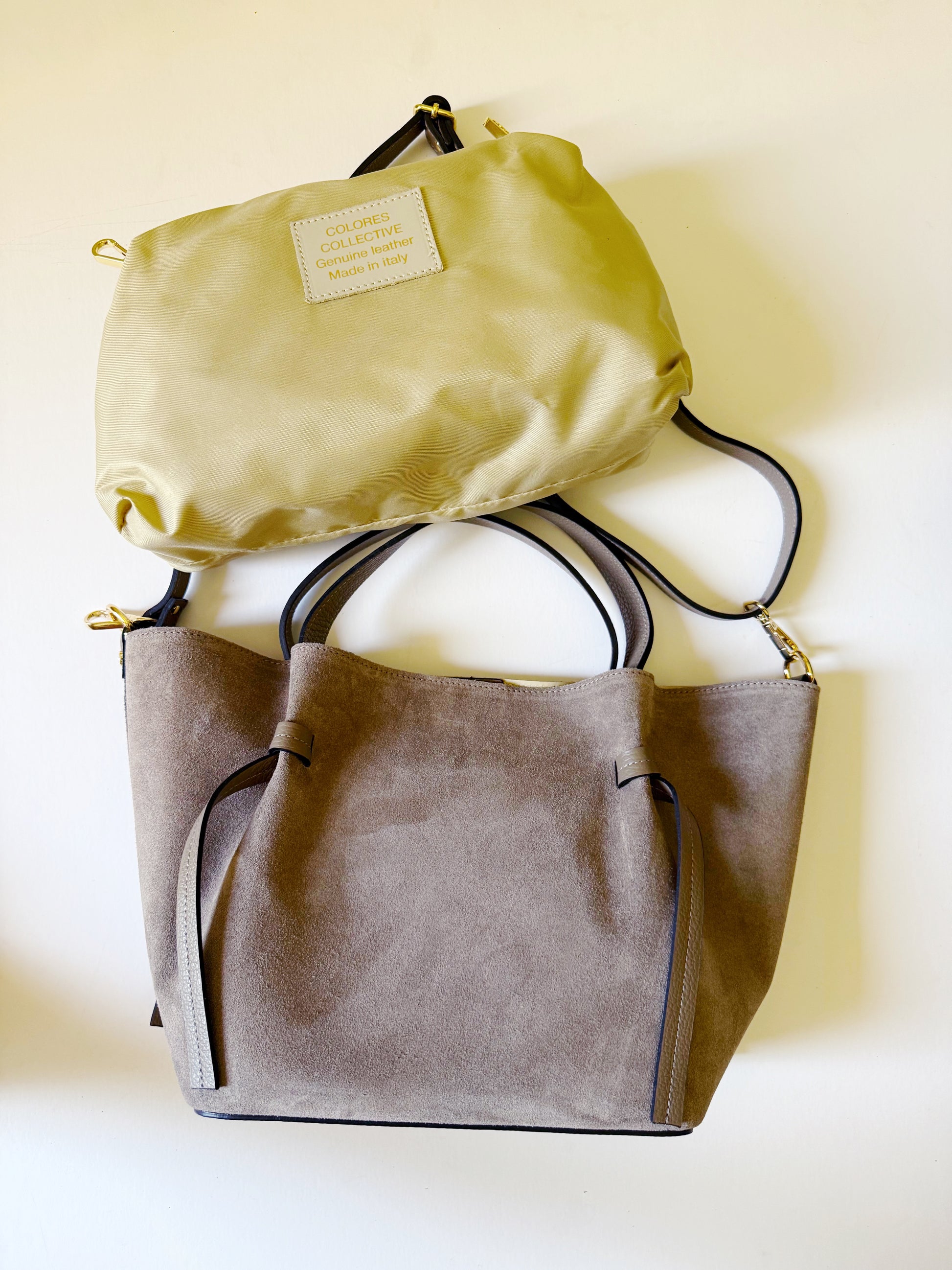 Suede Milan Tote: Stone Beige