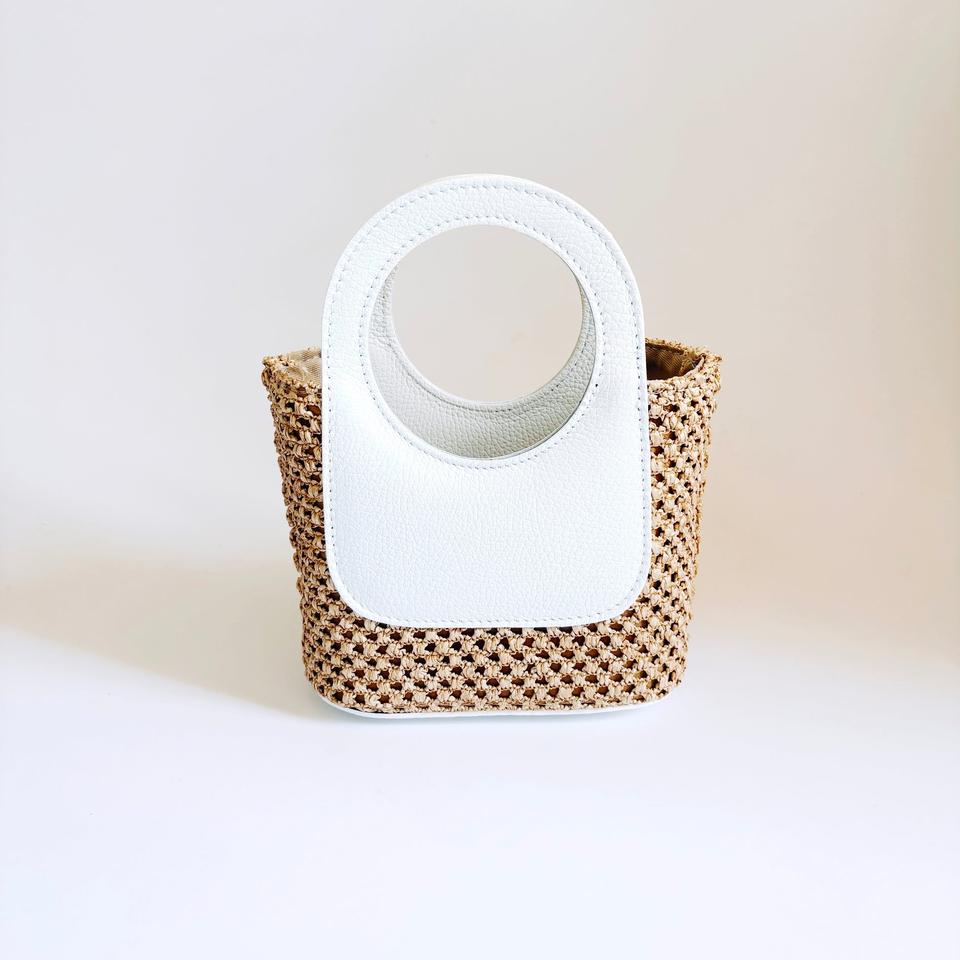 White Raffia Circle Mini Tote